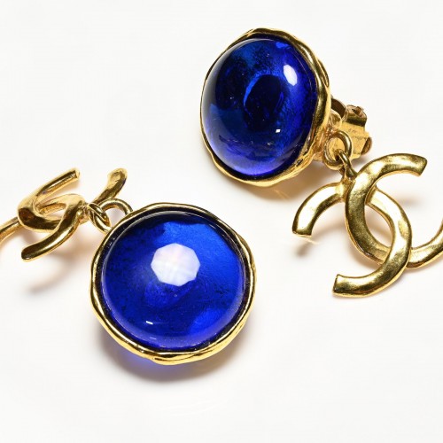 Be the first to review “Vintage Chanel Paris Spring 1996 Gripoix Blue Glass CC Drop Earrings” Cancel reply