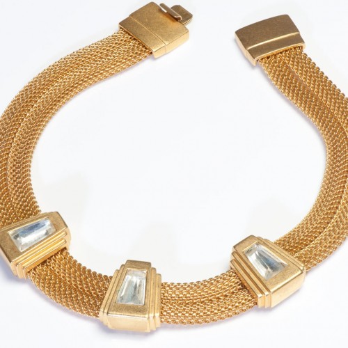 Antique Victorian Yellow Paste Cross Pendant Rivière Necklace