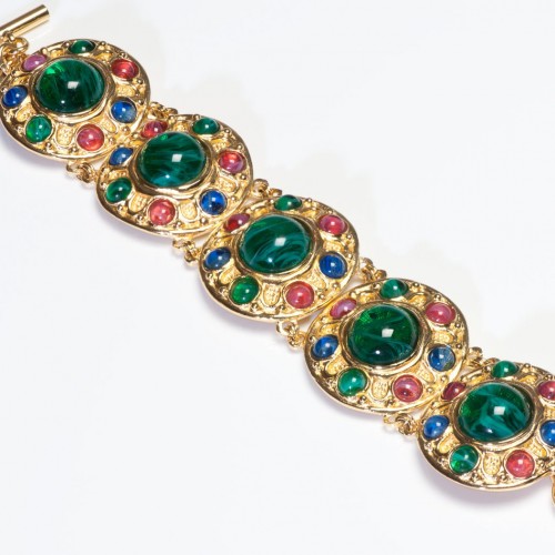 Vintage Christian Dior Green Blue Pink Cabochon Glass Earrings Bracelet Set
