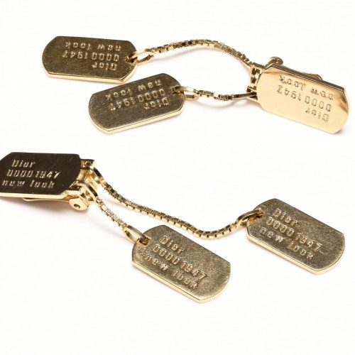 These Vintage Christian Dior Paris by John Galliano New Look Dog Tag Tassel Drop Earrings are a true statement piece. Made from high-quality materials, these earrings feature a unique dog tag design with tassel drop accents. Channel your inner fashionista and elevate any outfit with these elegant and timeless earrings.