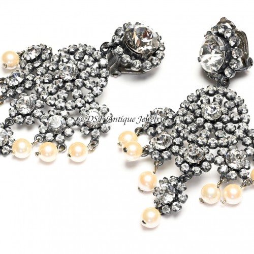 Vintage Christian Dior Paris by Max Muller Belle Epoque Style Crystal Pearl Earrings