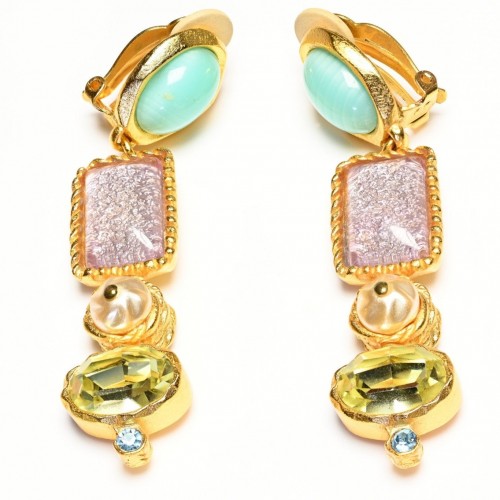 Vintage Christian Lacroix Paris Yellow Blue Purple Pearl Crystal Drop Earrings