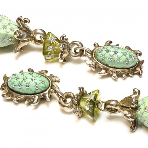 Vintage Claire Deve Paris Green Crystal Shoulder Duster Earrings
