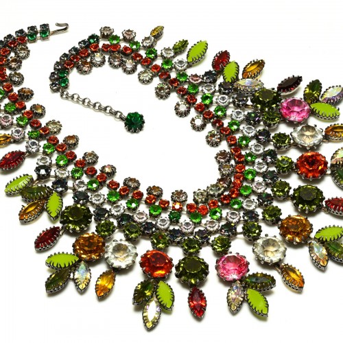 Vintage Countess Cissy Zoltowska CIS Green Pink Orange Crystal Necklace