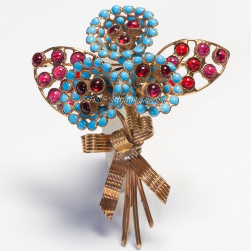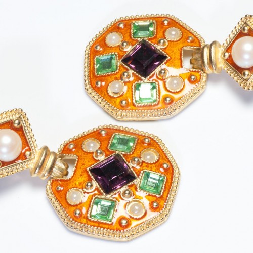 Vintage Craft Long Orange Enamel Green Purple Crystal Pearl Earrings