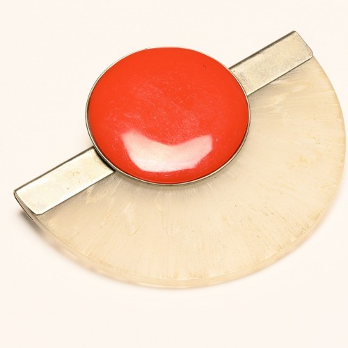 Vintage Fabrice Paris Modernist Style Red Enamel White Resin Brooch