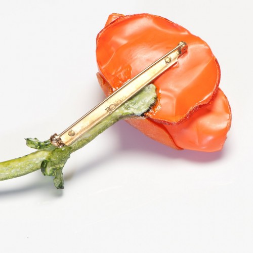 Vintage Fabrice Paris Orange Green Lucite Poppy Flower Brooch
