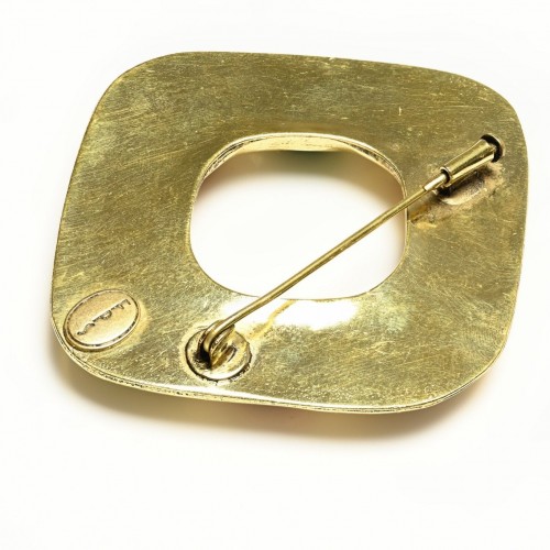 Vintage Frances Patiky Stein FPS Gripoix Red Green Orange Glass Brooch