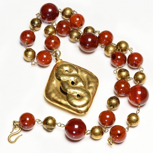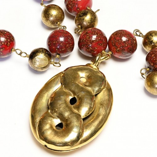 Vintage Frances Patiky Stein FPS Paris Gripoix Red Glass Beads Pendant Necklace