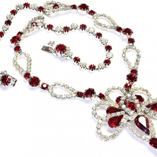 Vintage Gold Plated Wide 3 Strand Chain Link Crystal Twist Collar Necklace