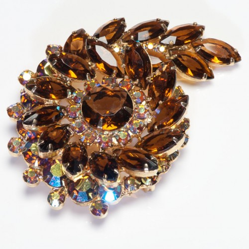 Vintage Juliana Brown Aurora Borealis Crystal Flower Brooch