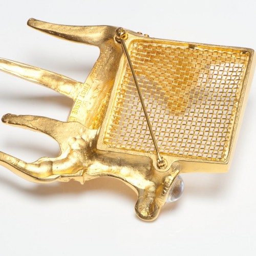 Be the first to review “Vintage Karl Lagerfeld Paris Gold Plated Crystal Louis XIV Chair Brooch” Cancel reply