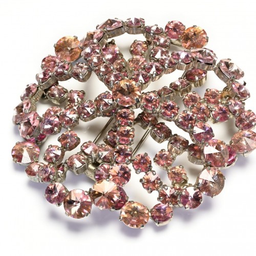 Indulge in the luxurious elegance of this Vintage Miriam Haskell Brooch. Crafted with delicate pink glass beads, each bead is carefully placed to create a stunning turtle, bird, and heart charm design.