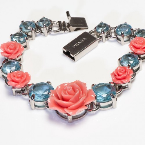 Vintage Miriam Haskell Red Blue Green Glass Crystal Flower Leaf Stickpin Brooch