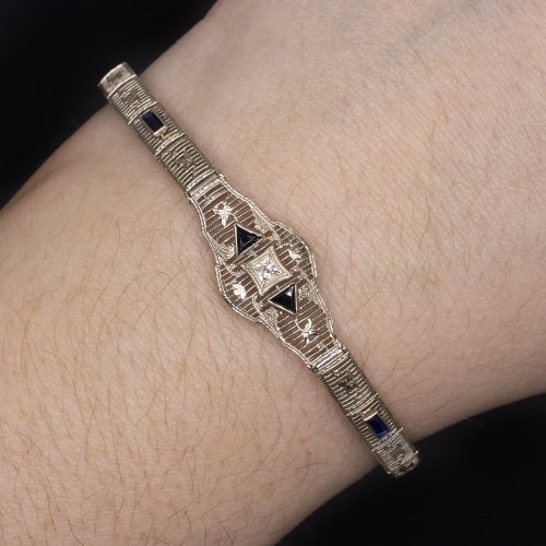 VINTAGE SAPPHIRE ETERNITY BAND RING 18k YELLOW GOLD 6gm FLORENTINE FINISH ESTATE