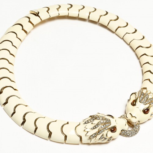 Vintage Schreiner NY White Keystone Crystal Ruffle Brooch