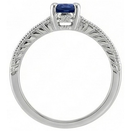 Stone Specifications: There is one oval sapphire approx. 1.50 carats (Approx. Size 7.5 x 5.5 mm) & approx. 0.50 carats round smaller diamonds on the side. Natural earth mined stones.