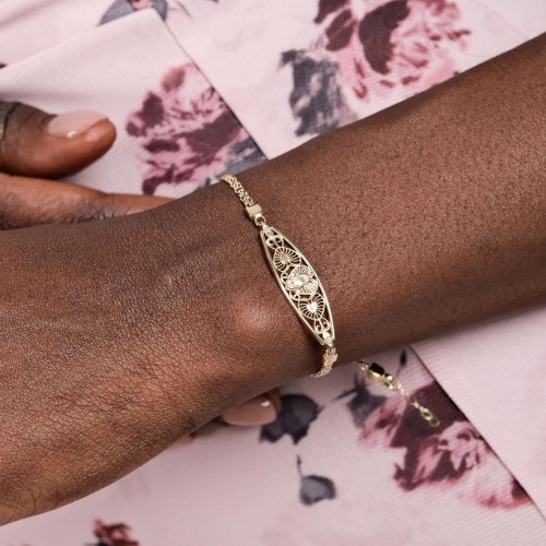 Honor tradition and beauty with our Virgen de Guadalupe Bracelet, crafted in 14K solid gold. Featuring a 1.25-inch detailed filigree charm on a classic rope-style cable chain, this elegant piece is perfect as a meaningful religious gift or a cherished keepsake for Mother’s Day. Includes a 1-inch adjustable extension for a comfortable fit.
