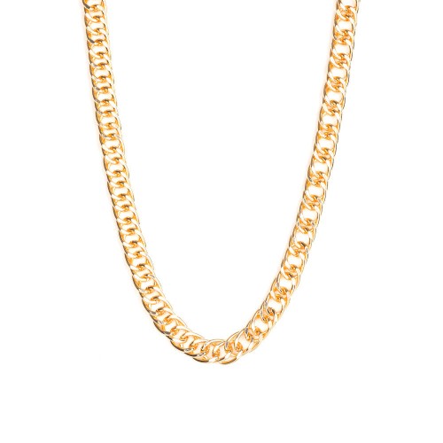 Classic gold beads and oversized white rhinestones trickle from the bottom of interlocking gold chains, creating a fierce fringe below the collar. Features an adjustable clasp closure.