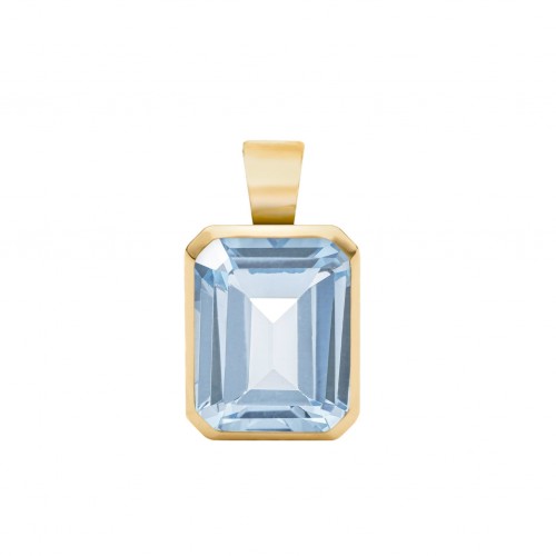 A stunning emerald-cut Atlantic Blue Topaz, hand-set in a 14k gold bezel and accented by a Diamond-encrusted bale, is featured in this classic statement piece. Purchase by itself or complete the look with your choice of a Saffron cable chain, Adelaide or Adelaide Mini paperclip chain, or Newport chain. A perfect gift for milestone occasions like graduations, promotions, and anniversaries.