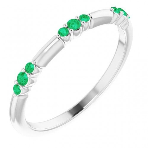 Wedding Band 1 Carat Round Columbian Green Emeralds Women Jewelry