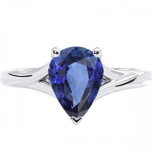 White Gold Sri Lankan Sapphire Ring Pear & Round Natural Earth Mined Diamonds 4 Carats