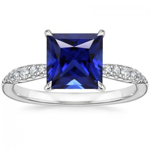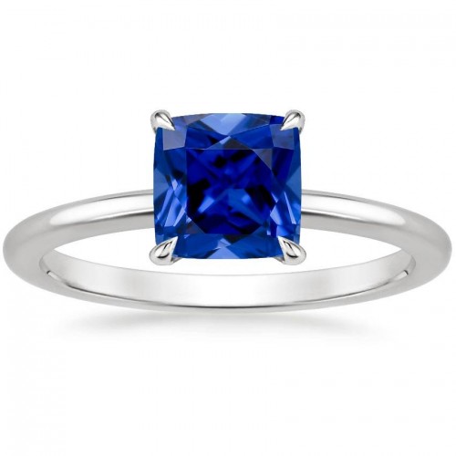 Women Natural Earth Mined Diamond Gemstone Ring With Cushion Blue Sapphire 2.50 Carats New