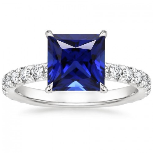 Stone Details : There is one princess center blue sapphire approx. 5 carats (Approx. Size 9 x 9 mm). Natural earth mined stone.
