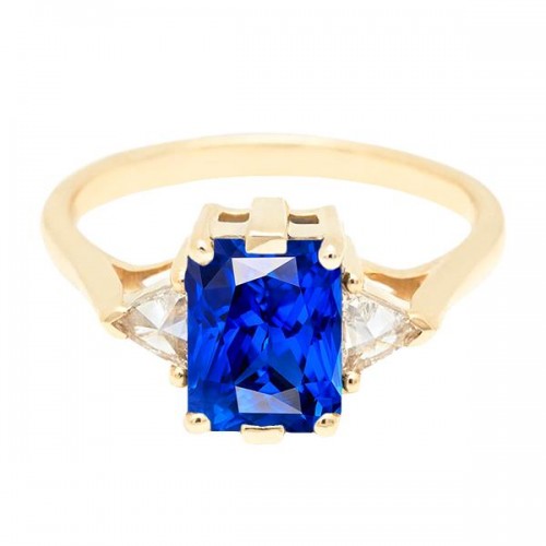 Yellow Gold Solitaire Ring Trillion Sapphire 1.50 Carats Prong Set