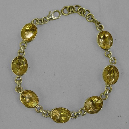 Citrine 7 Faceted Ovals Bezel Set Sterling Silver Link Bracelet – 25 CTW