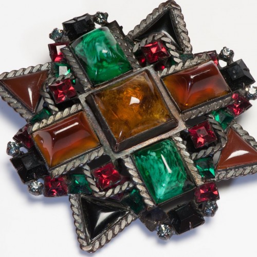 Yves Saint Laurent YSL Couture Green Brown Glass Crystal Star Pendant Brooch