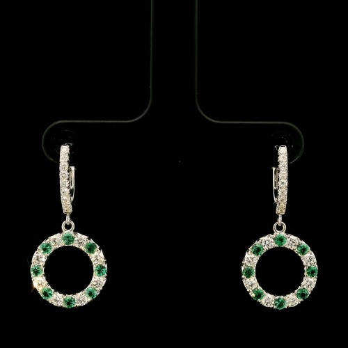 .75ct. T.W. Diamond & .50ct. T.W. Emerald Estate Hoop Earrings 18K White Gold “Spark” – J43081